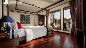 As you embark on your voyage, the Heritage Cruises takes you through the breathtaking landscapes of Lan Ha Bay – Cat Ba Archipelago, where limestone mountains rise dramatically from the emerald waters. This lesser-traveled route offers a unique glimpse into untouched natural beauty.