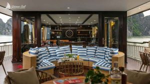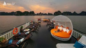 10:45 – 11:00: Arrive at the La Regina Day Cruise waiting lounge in Tuan Chau Harbour. Complete express check-in, and enjoy a welcome drink from the crew while the manager introduces the safety briefing and details the itinerary.